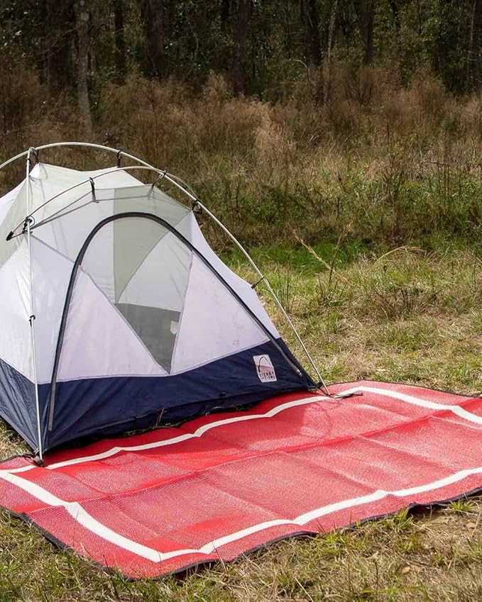 5x7 Red Outdoor RV Mat with Carry Bag – Extra Thick 5mm Recycled Poly Rug – Waterproof, Reversible, Heavy-Duty – Luxury Camping Mat for Patio, Beach, Campsite (Red with Carry Bag, 5'x7')