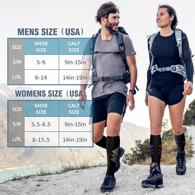 - GIVE LIFE TO YOUR LEGS! - More improve circulation means more Healthier legs and less pain+swelling.Our Graduated Compression Socks put pressure in just the right spots.Provides true graduated compression to support your legs,reduce fatigue,soreness,and prevent injuries at the same time.Progressive compression technology has been recognized by many users Our copper compression socks is self-care staples.Make you feel great-no matter where,no matter when,and no matter what you're up to!