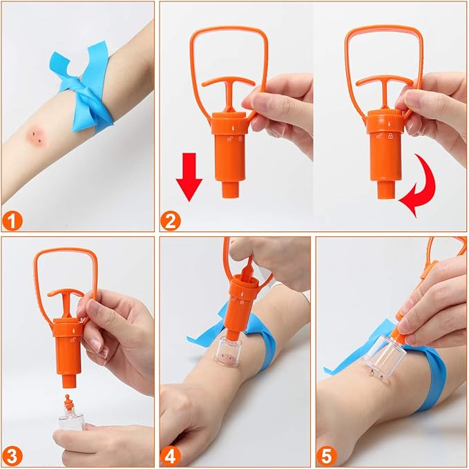 - Wide range of applications: venom extractor used for snake bites, bees, spiders, mosquito bites, etc. It can also apply for camping, fishing, hiking, and jungle adventures to help remove venom below your skin.