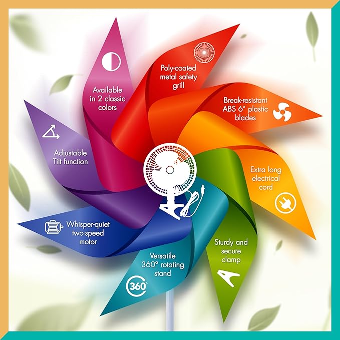 JOEY'Z 6 INCH - 2 Speed - Adjustable Tilt, Whisper Quiet Operation Clip-On-Fan with 5.5 Foot Cord and Steel Safety Grill (1, 6" Fan with 5 FT Cord)