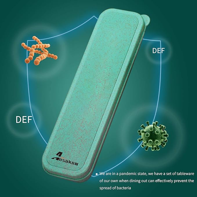 - Silverware set is made of 18/8 stainless steel (SUS 304). Doesn’t contain harmful metal, is corrosion-resistant and durable. The case is made of wheat straw and it's BPA free.The travel silverware set with case is made of high-quality food-grade stainless steel, which is sturdy and durable .Travel cutlery setis not easy to bend or deform after long-term use, is heat-resistant, reusable, and does not rust