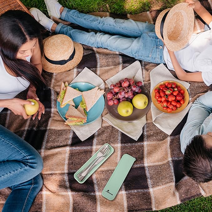 - The portable silverware set with case using mirror polishing technology, smooth surface without rough spots, anti-oxidation.The portable cutlery set is easy to clean.The dishwasher safe.Use this durable silverware case travel set for an extended period, reducing single-use plastic waste