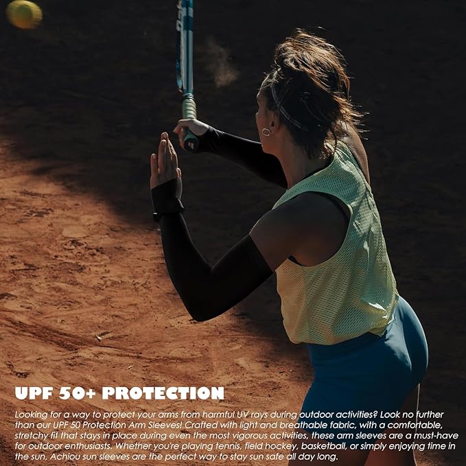 - ERGONOMIC DESIGN: Achiou arm sleeves with thumb holes are ergonomically designed to protect your muscles and soothe your arms while you’re doing strenuous exercise or physical work. Perfect for golfing, fishing, playing basketball, cycling, hiking, driving or even gardening
