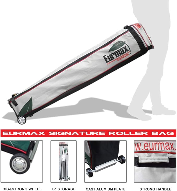 - The Package Includes:1x10Ft commercial canopy frame,1x10Ft pop up canopy top,3x10Ft sidewalls,1x10Ft middle door wall,1x roller bag,Bonus 4 weight bags & 1 x 10Ft upgrade awning(Extra large awning:added about 24 squared feet of shade to your friends or customer).