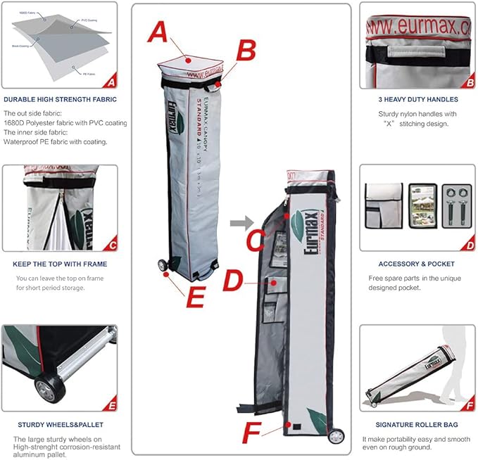 - Easy Setup:With the latest thumb lock system and three height positions, assembling and taking down the canopy is a breeze, and you can adjust the clearance height from 10.5ft to 11.1ft. Enjoy quick setup, so you can focus on enjoying your event without the stress of complicated assembly.