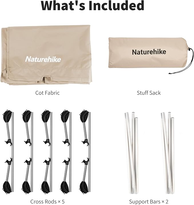 - 【60s Set Up & Take Down】Simply insert 2 long support poles into the 2 sleeves of the cot sheet and lock the 5 support legs. The shock-cord tube will make the setting up and taking down much simple. Within 60 seconds you can set your camp cot up and enjoy the comfort