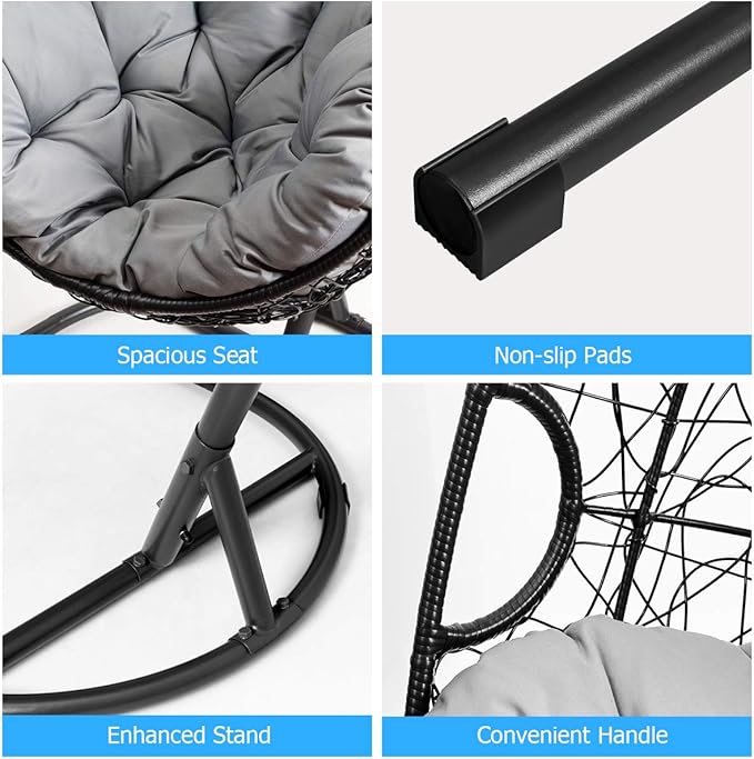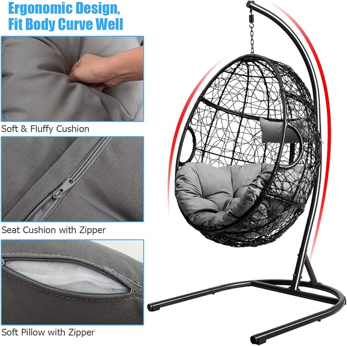 - Indoor/Outdoor Use: The swing chair is designed for both indoor and outdoor use. Unique egg-shape appearance blends with the surrounding environment better and adds a special leisure feeling.