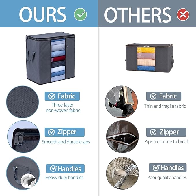 - REINFORCED HANDLES: Thick, strong, reinforced handles are designed for convenient access and portability without breaking or tearing. Handles are sewn with 6 layers of quality, sturdy fabric to double the load capacity. Cross-stitched seams are added for maximum strength and security.