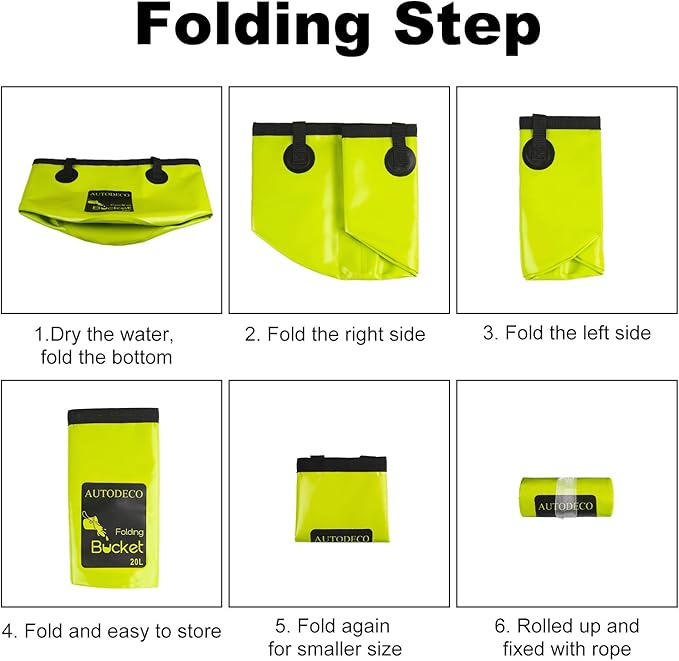 - Multi-purpose Fold Bucket: This AUTODECO Collapsible bucket is ideal for camping, fishing, traveling, boating, hiking, gardening, picnic, outdoor activities and daily use. It can be used as fish bucket, ice bucket, fruits and veggies basket, travel basin, coaches bucket for baseball, etc