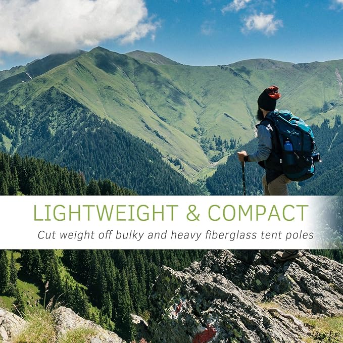 - NO MORE FIBERGLASS POLES: Fiberglass poles tend to crack and have devilish microscopic splinters which are difficult to remove. Replacing them with Aluminum poles can get a prolonged lifespan and eliminate the trouble of buying tent poles frequently