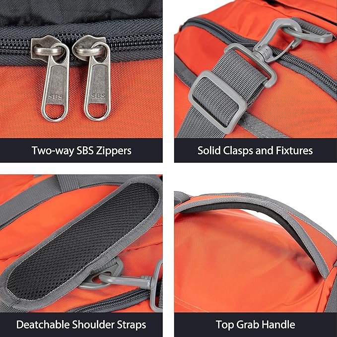 - Versatile Carrying Choices: Our travel duffel bag boasts detachable and adjustable straps, providing the option to wear it as a shoulder bag. Furthermore, two shoulder straps are cleverly concealed in the back zipper compartment, seamlessly transforming it into a backpacking backpack. The top handle allows effortless hand-carrying or convenient attachment to a suitcase. The side handles offer the flexibility to carry it alone or lift it jointly with a companion.