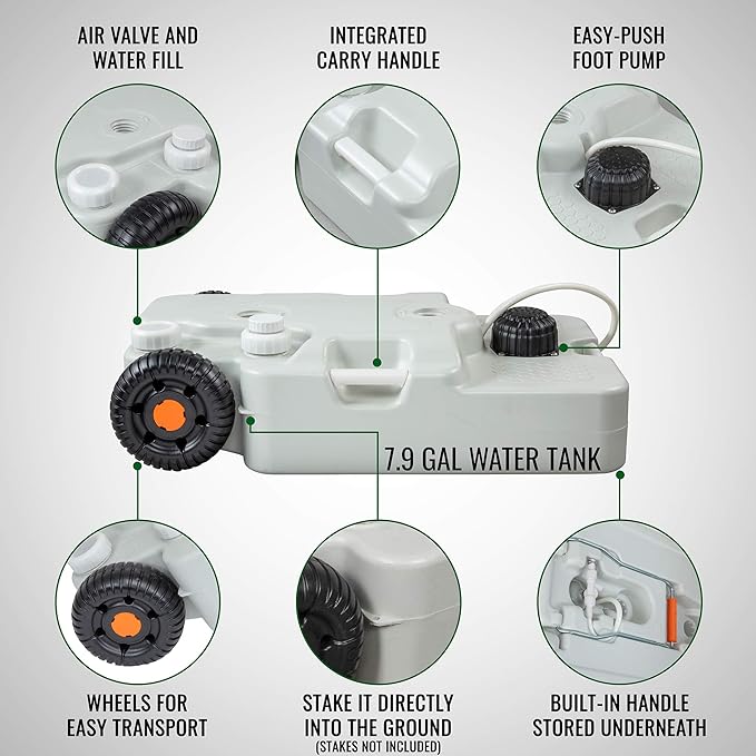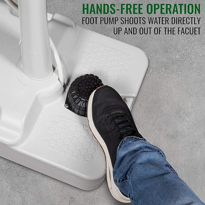 Hike Crew XL Portable Outdoor Foot Pump Camping Sink – Collapsible Hand Wash Basin w/ 7 Gallon (30L) Water Tank, Wheels, Soap Dispenser, Gooseneck Faucet & Towel Holder – for RV, Travel, Worksite