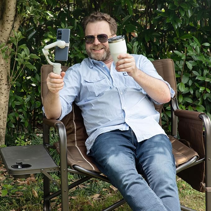 Timber Ridge XXL Upgraded Oversized Directors Chairs with Foldable Side Table, Detachable Side Pocket, Heavy Duty Folding Camping Chair up to 600 Lbs Weight Capacity (Brown) Ideal Gift