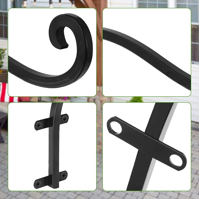 4Pack Heavy Duty Plant Hanger, 12inch Outdoor Hanging Plant Bracket, 60lbs Bearing Capacity Metal Wall Flower Pot Hanger Hooks, Wall Hanging Hooks for Wind Chimes, Bird Feeders, Lanterns