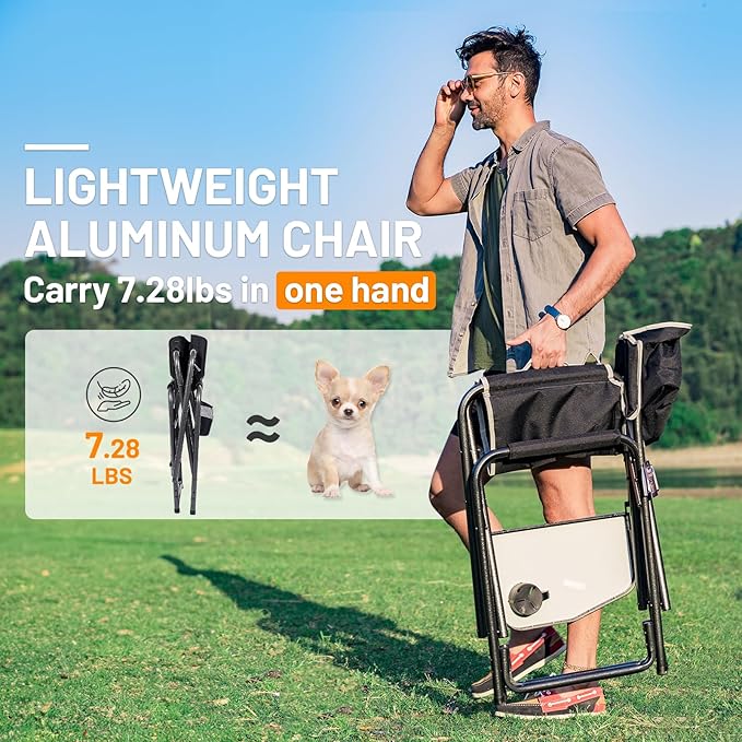 - LIGHTWEIGHT & PORTABLE: This folding chair is crafted with sturdy aluminum, weighing only 7.28lbs; it includes a carry strap for easy transportation, enabling you to take it anywhere.