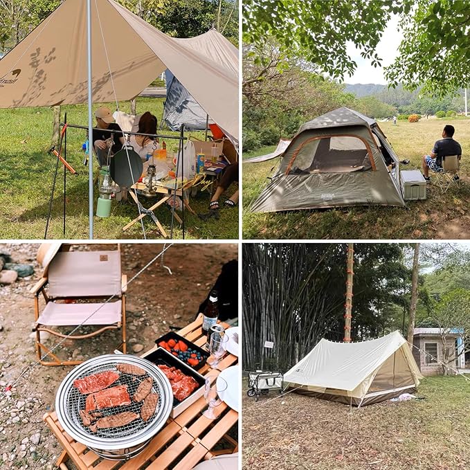 - ๐พ HIGH-QUALITY ALUMINUM ALLOY TENT CORD TENSIONER: Each tent rope has an aluminum allay tensioner, which can adjust the length of the rope according to your actual needs
