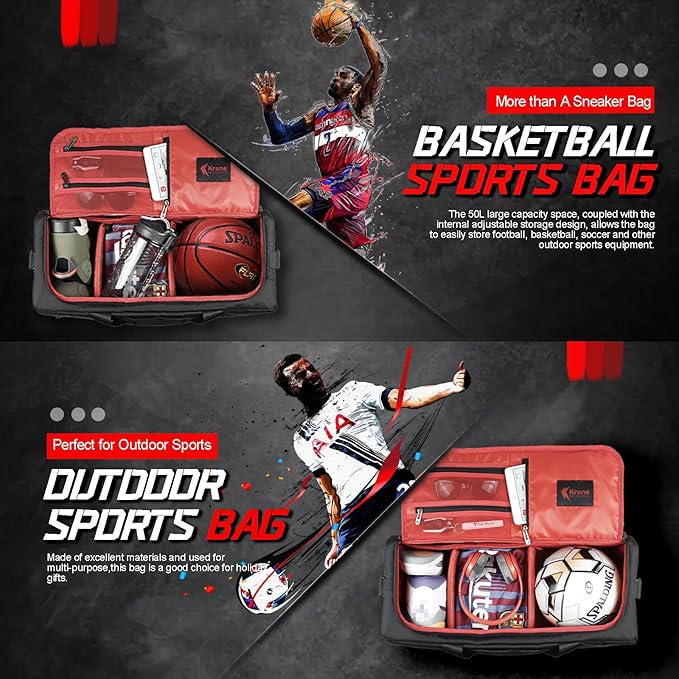 - WIDE USAGE: This fashion travel duffle bag is not only used as a shoe suitcase for travel. Adjusting the 3 dividers inside, the bag can be customized to fit any storage needs. It is perfect for traveling, outdoor activities, baseball, football, basketball, and clothing storage. This large travel duffle bag can be transformed into a Sneaker Bag / Travel Duffel Bag / Gym Bag / Sports Bag / Boxing Bag / Athletic Bag.