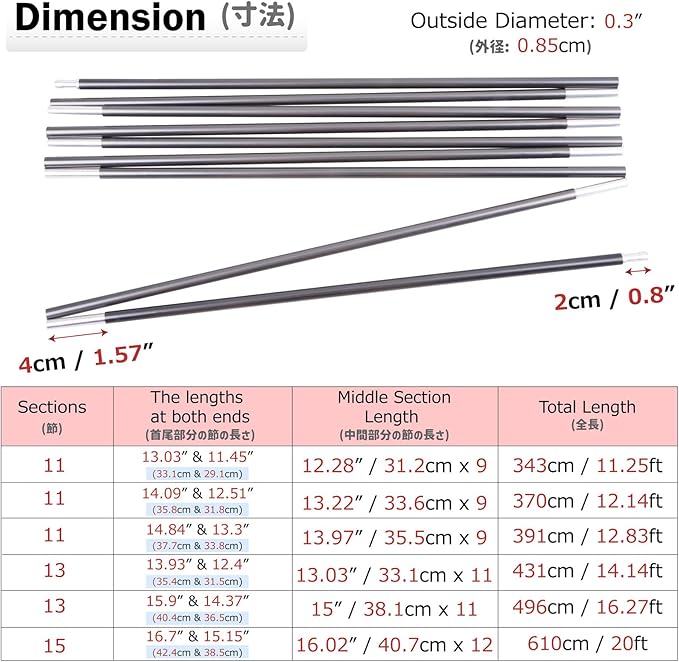 - DIY Poles: These replaceable aluminum tent poles can be easily disassembled to remove or add sections, making them perfect for your DIY projects