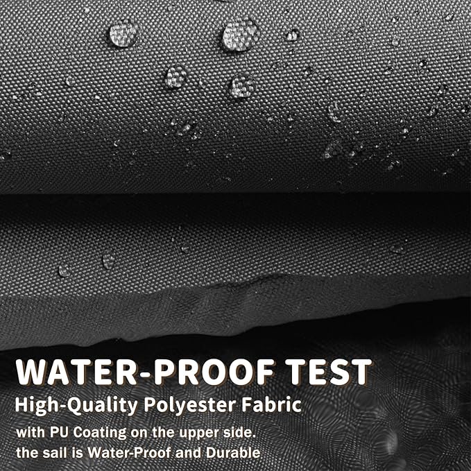 - ?�Waterproof?‘The shade sail is made of 160GSM PES material, PU coated, blocks up to 98% of UV rays, and has a shade rate of 90%- 95% (white series 85%-90%). It is resistant to light rain and has a water pressure resistance of 400 kPa. Please do not use it in heavy rain or storms