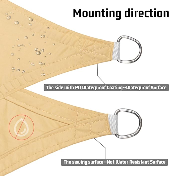 - ?�Waterproof?‘The shade sail is made of 160GSM PES material, PU coated, blocks up to 98% of UV rays, and has a shade rate of 90%- 95% (white series 85%-90%). It is resistant to light rain and has a water pressure resistance of 400 kPa. Please do not use it in heavy rain or storms