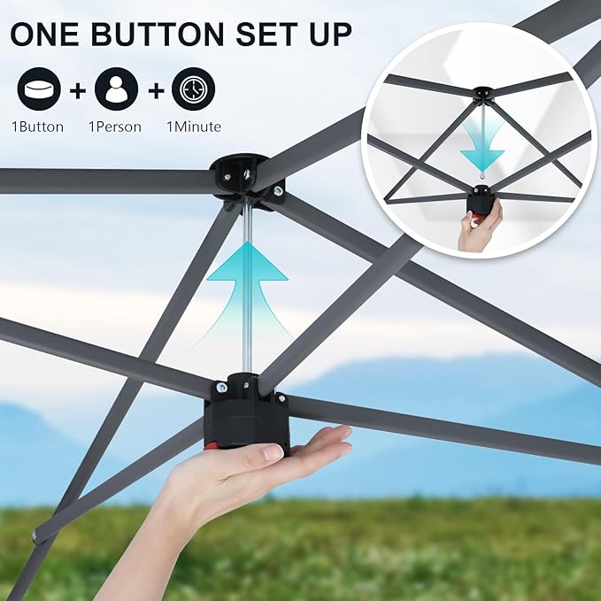 - 【EASY SETUP】The COOSHADE 13x13 canopy tent is designed with fully assembled One-Piece frame in high gauge sturdy metal no tools needed,seamlessly enables set-up in one minute.Super strong double truss one piece frame with full awnings comes completely assembled. And the eaves can be automatically extending when open the pop up gazebo opens without any additional manual assembly.