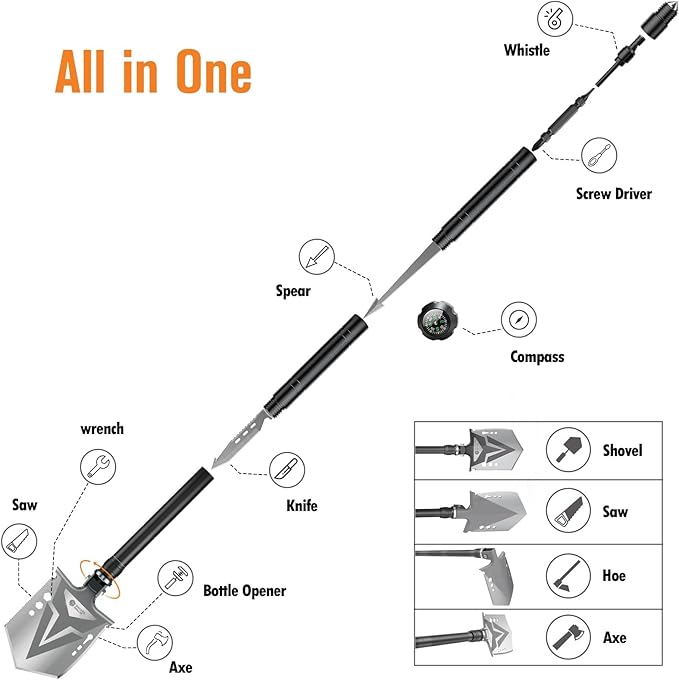 - With this survival shovel, you have the last piece of camping and survival tool you will ever need