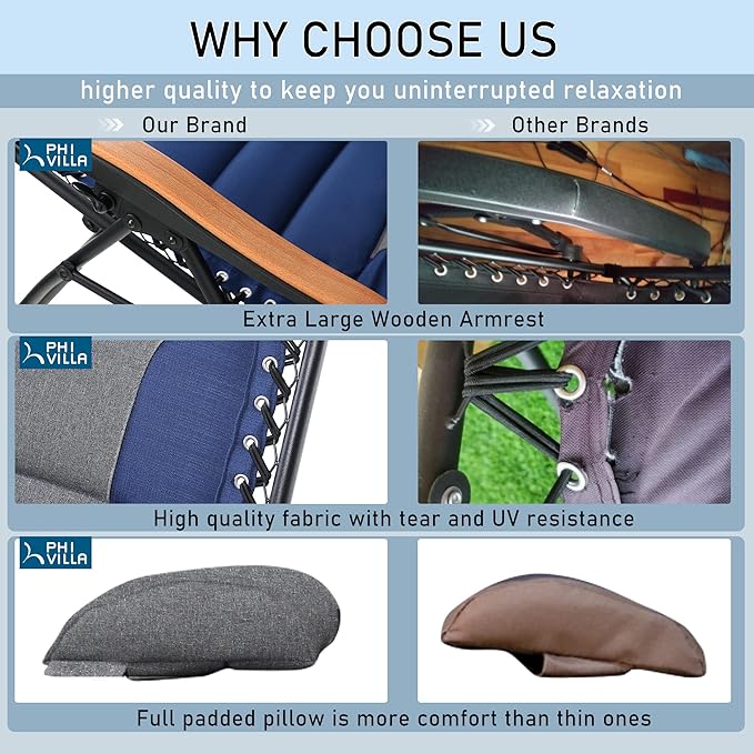 - No assembly: Easy folding and compact structure is suitable for any patio occasions, such as poolside, yard, beach or balcony. We provide 12 months warranty and lifetime customer support. Please just contact Phi Villa customer service if you have any issue with our product