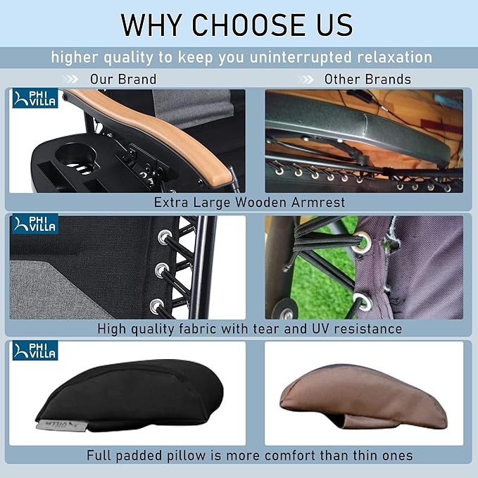 - No assembly: Easy folding and compact structure is suitable for any patio occasions, such as poolside, yard, beach or balcony. We provide 12 months warranty and lifetime customer support. Please just contact Phi Villa customer service if you have any issue with our product