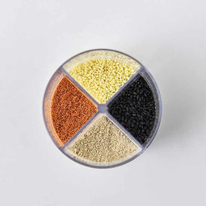 - 4-in-1 Design: Each jar features four separate compartments with individual flip lids, preventing flavor mixing and ensuring convenient pouring.