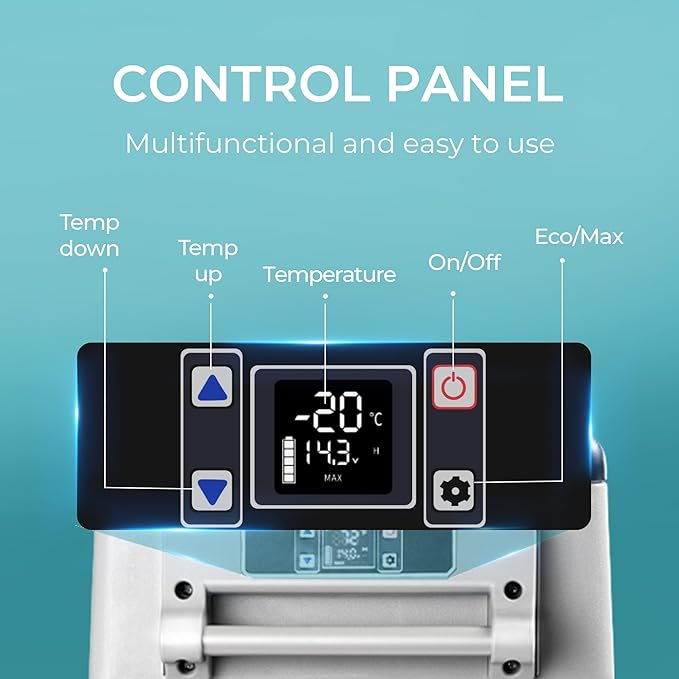 - User-Friendly Design & LCD Panel; This portable cooler is equipped with a removable handle for easy portability. The 12v fridge includes a simple LCD control panel for easy temperature adjustments. An internal LED light design makes the 12 volt fridge convenient to access your food at night