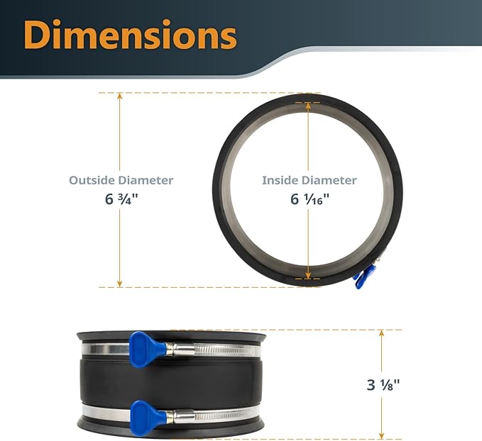 - DIMENSIONS: 6-3/4” OD, 6-1/16” ID and 3-1/8" Length | Connects to 6 inch nominal outer diameter adapter or dust collection pipe