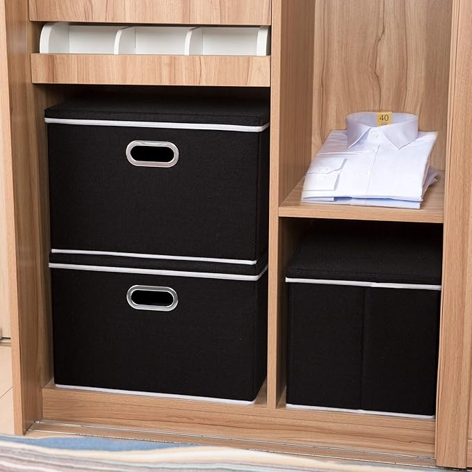 - 【Fashionable Bins】Designed to match interior decor and style in any room in the home or office. Enjoy the relaxing ambiance of the soft black and natural white neutral color scheme.