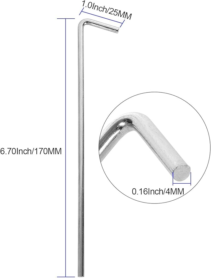 - 100 Pack tent stakes metal, Diameter 4mm/0.16”; Length 170mm/6-3/4”