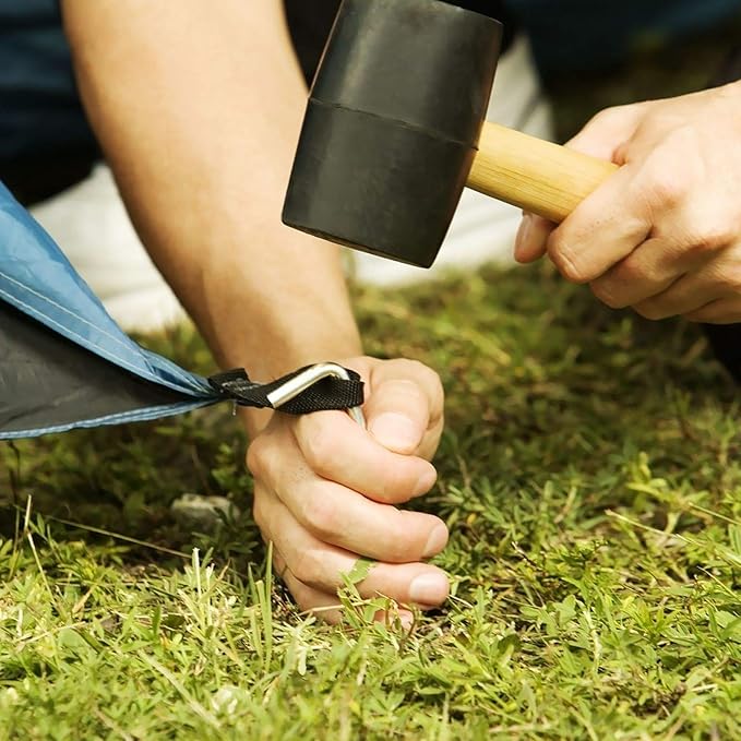 - Tent stakes is a round rod spike, with a hook on the top end, penetrate into the ground easily