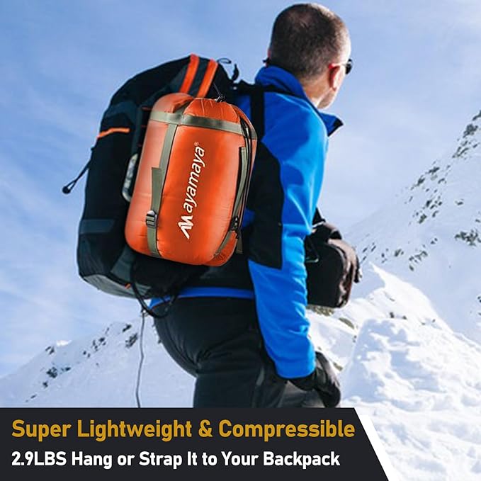 - [ PERFECT PORTABLE SIZE[ PERFECT PORTABLE SIZE – PACKS UP SMALL ] - It weighs only 2.9 lbs( There may have a margin of error when filling it ), and comes with a compression stuff sack, to compress into a small size for easy carrying and to save space. It is perfect for camping, backpacking, hunting, outdoor activities, and mountaineering.