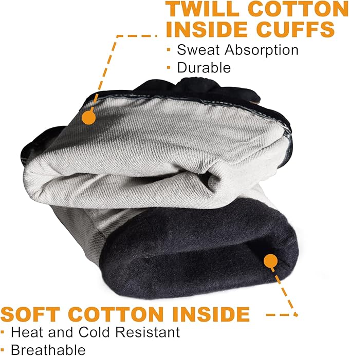 - Superior Comfort: 100% soft insulated cotton lined interior makes gloves have better heat resistance, cold resistance, sweat absorption and breathable during use. Straight thumb design enhances comfort and fingertip sensitivity