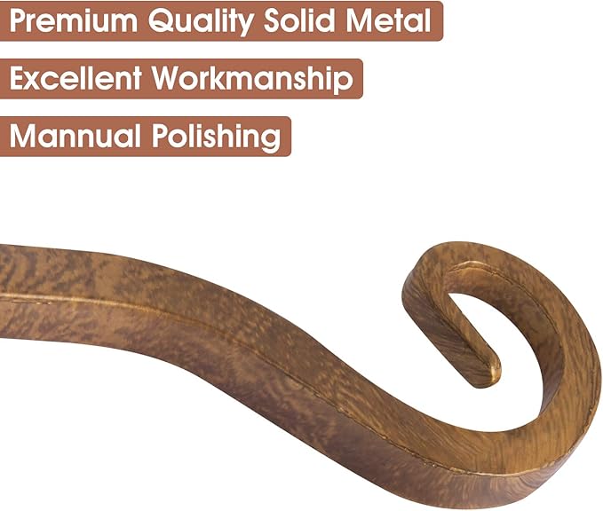 Jardim 2 Pack 10 Inch Premium Decorative Metal Iron Wall Hangers for Home Decor, Indoor Outdoor Plant Bracket Rustic Hanging Gardening Hooks for Planters, Bird Feeders, Lanterns, Wind Chimes (Coffee)