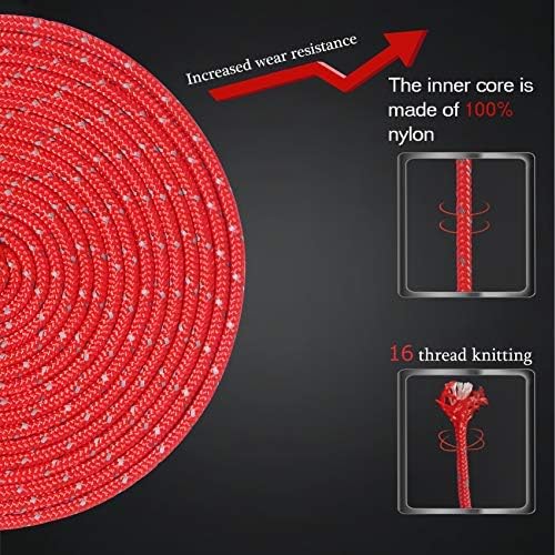 - 【Materials】Nylon(inner)+ Polyester(surface)+Reflective Cord,Combines the advantages of various materials,the windproof tent guy lines is Water, Moisture, UV, Weather Resistant,Great design for outdoor activities;