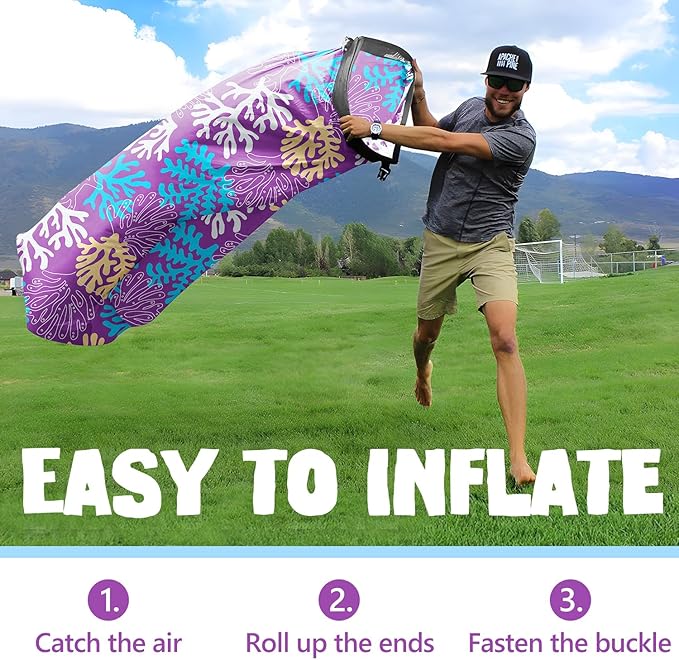 - Easy Inflation Design -- No pump required for AlphaBeing air lounger. Just a few scoops of air and this inflatable lounger is ready to hangout in. This is a must-have for any BBQ, beach, hike, concert, or camping trip. Folding to 12"x 8"x 4"and fitting in its own carrying bag with shoulder strap, this air sofa is ready to be taken anywhere with you.