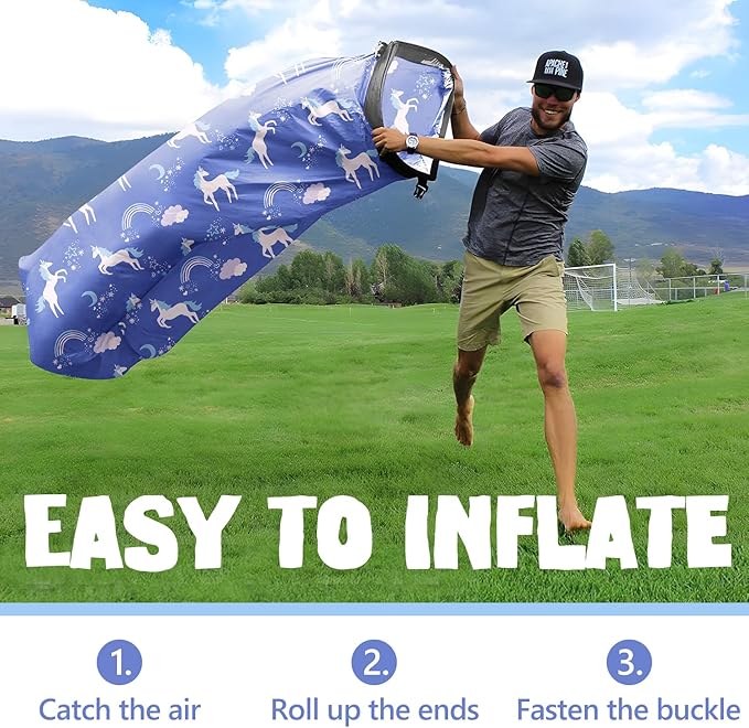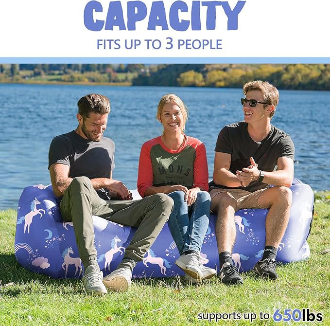 - Convenient Anytime, Anywhere: No pump required for our air lounger. Just a few scoops of air and this blow up couch is ready to hangout in. And it comes with opener and wind stake. Perfect for an afternoon of lounging, whether you're at the campsite, pre-game, BBQ or music festival.
