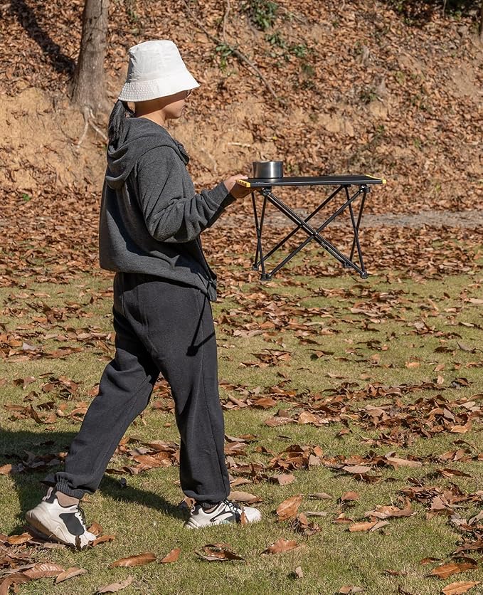 - Ultralight, made of aerospace-grade aluminum alloy, only 3 lbs; Max Load 66 lbs; Unlike wooden or nylon-top tables, this table is durable, waterproof, corrosion-resistant, easy to clean; Sturdy joints and connectors, plus anti-slip rubber feet make this table more stable, and the legs won't fold, bend, or disengage on different terrain; Very easy to set up, just open the base frame and attach the table top, enjoy your leisure time in seconds