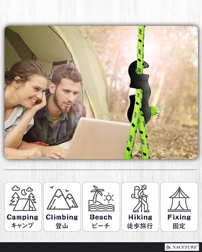 - ๐๐๐๐ฎ๐ผ๐ฟ๐ ๐ผ๐ฟ๐ฒ, ๐๐๐๐ผ๐ฆ๐ฎ๐๐ฒ๐ฑ%โ FUNCTIONAL TENT ACCESSORIES - Donโt stress anymore when youโre out hiking or at the beach and you think your tent is going to be seen rolling away like a tumble weed, because we got you covered. Our hiking tent rope adjuster will help you to protect your tent securely from strong wind and rainstorm so you can finally have your peace of mind.