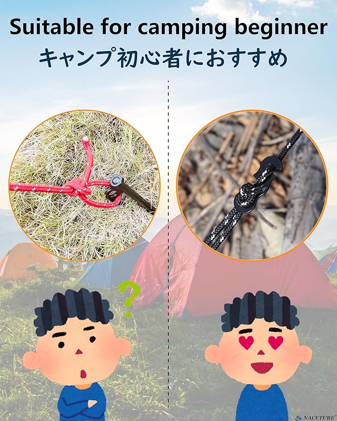 - ๐๐๐๐ฎ๐ผ๐ฟ๐ ๐ผ๐ฟ๐ฒ, ๐๐๐๐ผ๐ฆ๐ฎ๐๐ฒ๐ฑ%โ FUNCTIONAL TENT ACCESSORIES - Donโt stress anymore when youโre out hiking or at the beach and you think your tent is going to be seen rolling away like a tumble weed, because we got you covered. Our hiking tent rope adjuster will help you to protect your tent securely from strong wind and rainstorm so you can finally have your peace of mind.