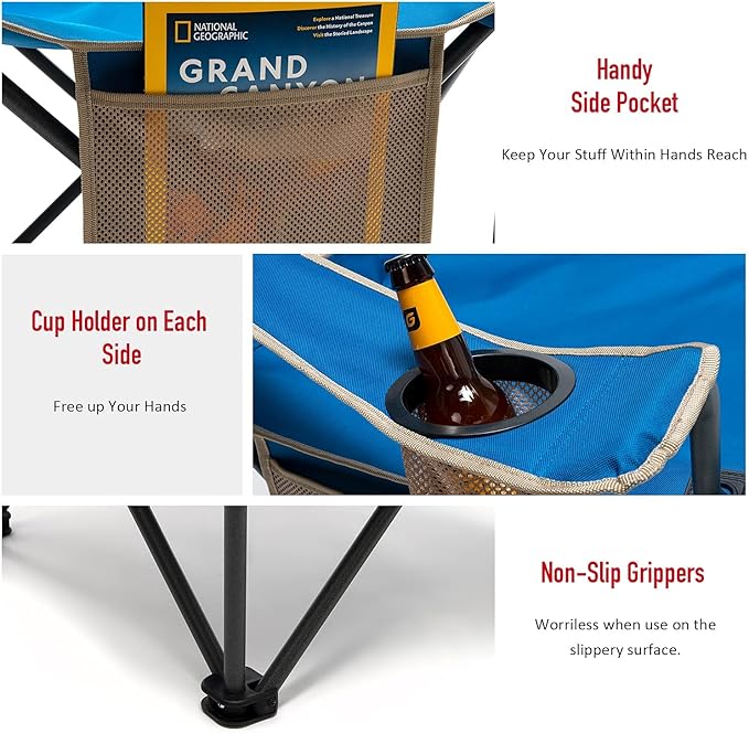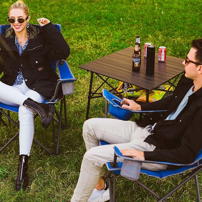 - Super Handy & Space Saving: The folding chairs camping has a built-in bottle opener and 2 cup holders free your hands while camping, picnic, hiking, traveling or fishing, and easily store your drinks, sunglasses, and phone within hands reach. The packed size is 40"x8.5"x8".