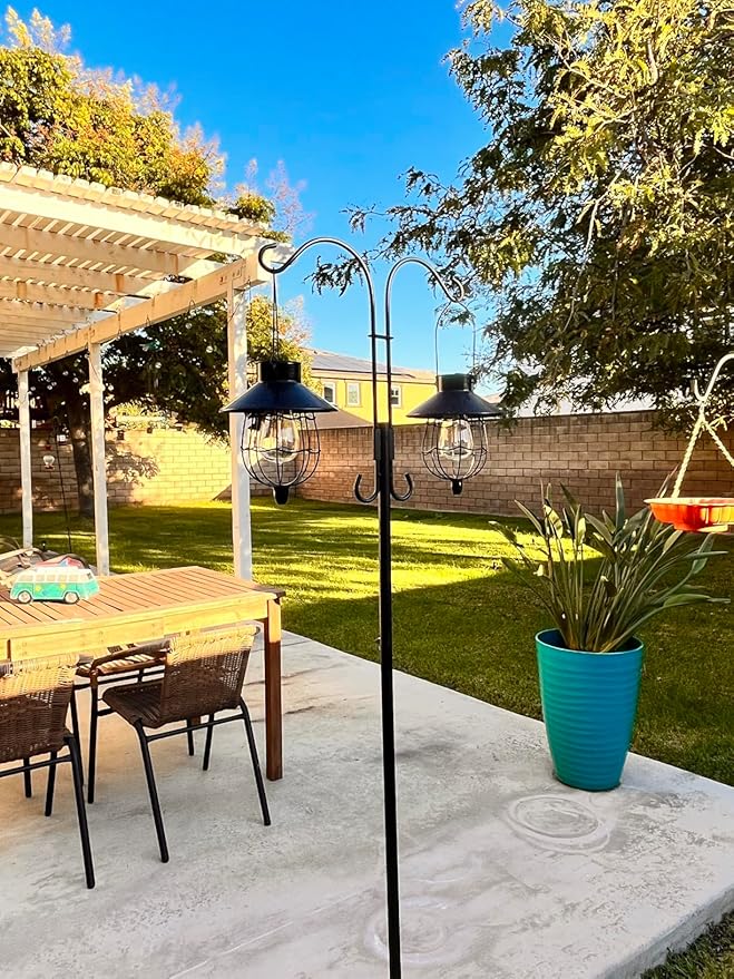YAKii 2 Pack Solar Lantern Hanging Waterproof Outdoor Metal Solar Lamp with Warm White Light Decorate for Yard Garden Pathway Patio Porch Decor (Black)
