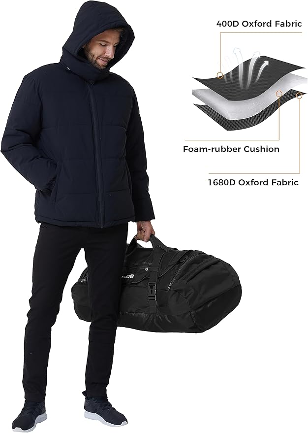 - Tough & Comfortable: Crafted from tear-resistant, lightweight nylon with a PU coating, this duffel gym bag is easy to maintain. Boasting premium metal SBS zippers and reinforced stress points for longevity, its sponge-padded handles and shoulder straps guarantee comfort and breathability, regardless of how you carry it.