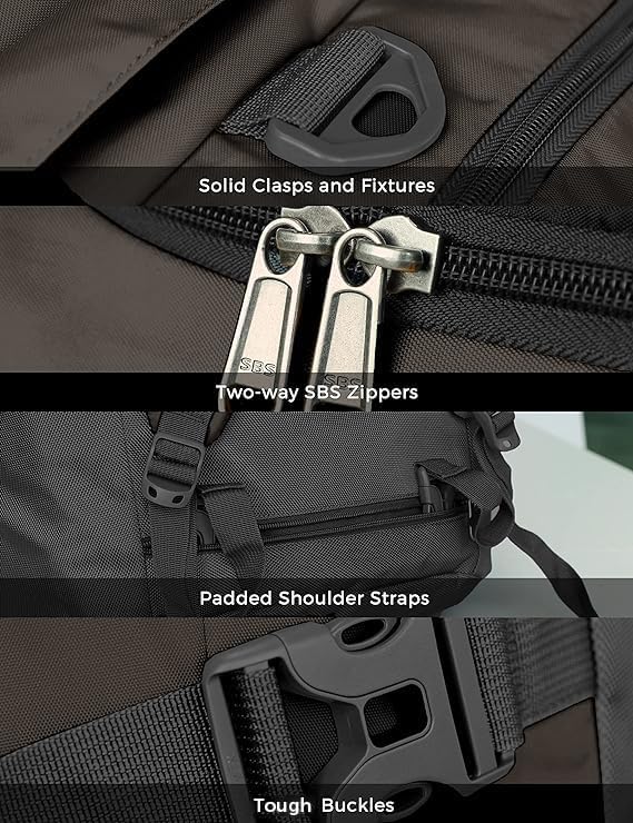 - Versatile Carrying Choices: Our travel duffel bag boasts detachable and adjustable straps, providing the option to wear it as a shoulder bag. Furthermore, two shoulder straps are cleverly concealed in the back zipper compartment, seamlessly transforming it into a backpacking backpack. The top handle allows effortless hand-carrying or convenient attachment to a suitcase. The side handles offer the flexibility to carry it alone or lift it jointly with a companion.