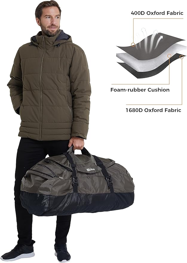 - Tough & Comfortable: Crafted from tear-resistant, lightweight nylon with a PU coating, this duffel gym bag is easy to maintain. Boasting premium metal SBS zippers and reinforced stress points for longevity, its sponge-padded handles and shoulder straps guarantee comfort and breathability, regardless of how you carry it.