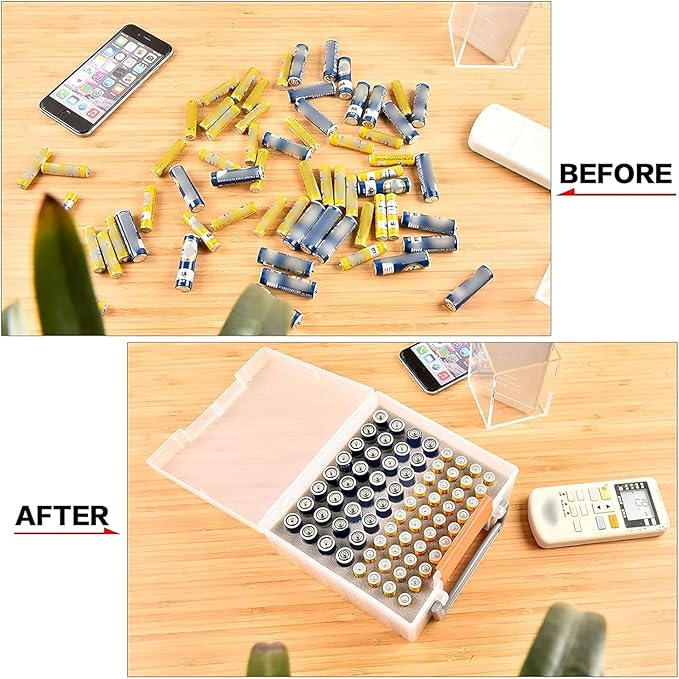 - Compact & Portable Battery Holder: Small battery organizer container with strong latch for easy to opening and closing. Top handle provide convenience for carrying, hanging. Compact design easy for you to put anywhere like closet, shelve.drawer. Good choose for your friend and family