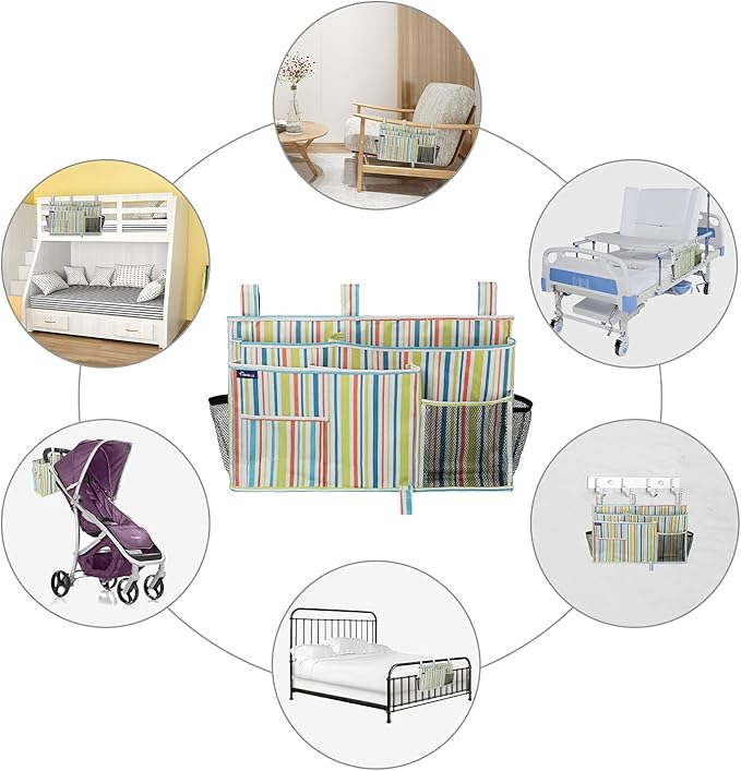 - Multi-Purpose: The bedside organizer is suitable for kid beds, top bunk beds, chair arms, and baby strollers, a good choice for RV, home, hospital, living room, or college dorm.